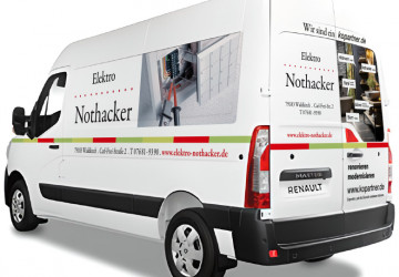 Neues Firmenfahrzeg der Firma Nothacker Elektro mit kopartner-Werbung